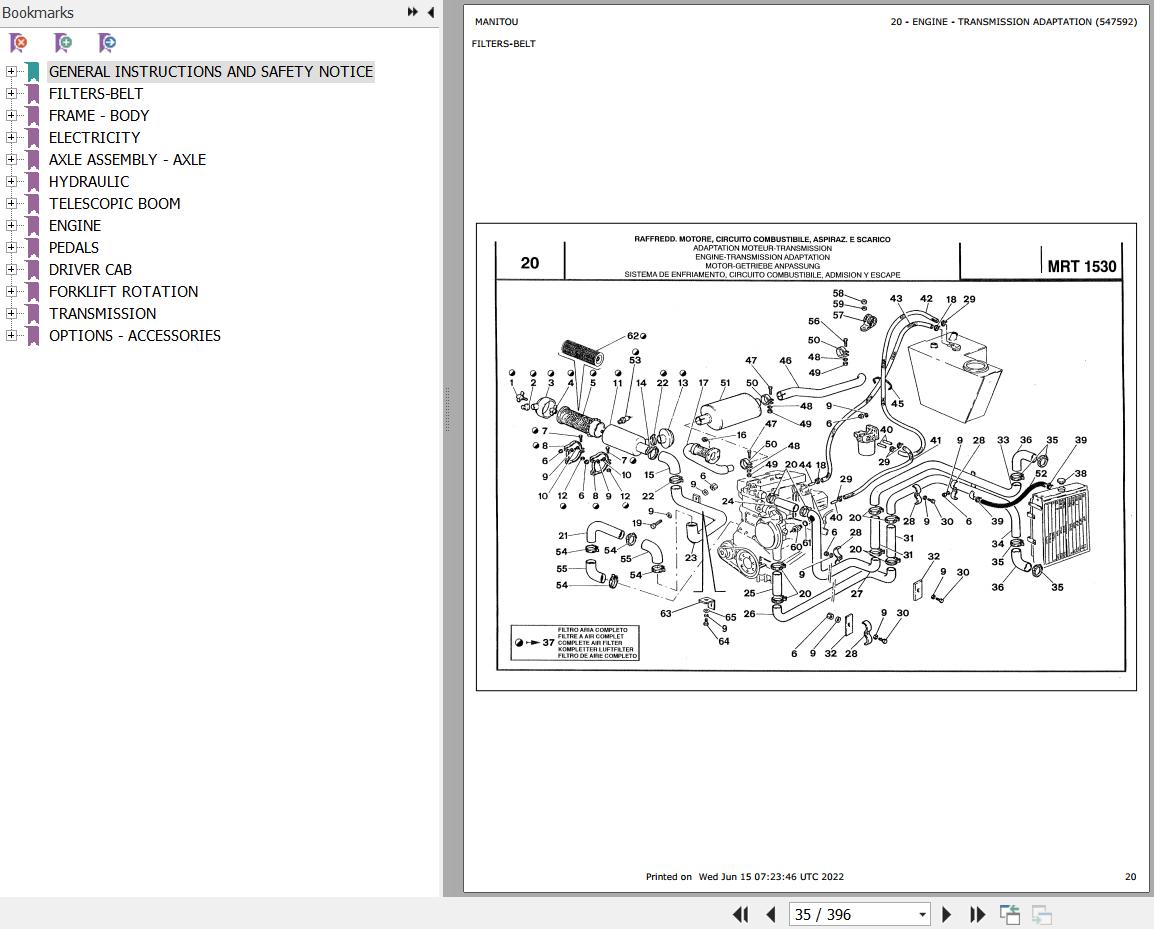The Bookmarks Of Manitou MRT 1530 TURBO COMFORT LINE MOT 1004 4T Telescopic Handler Parts Catalog: