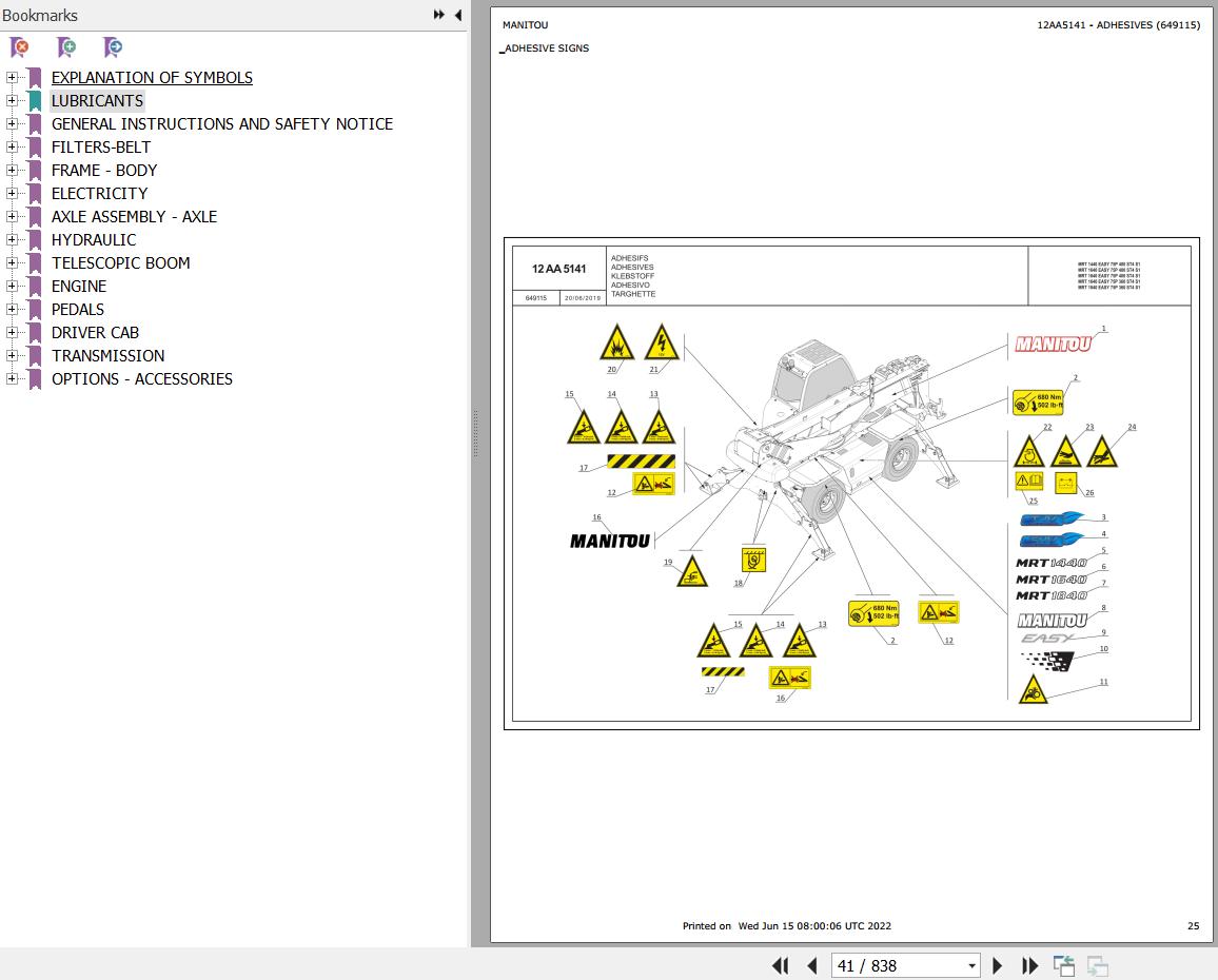 Manitou MRT 1640 EASY 75P 360 ST4 S1 Parts Catalog 649115
