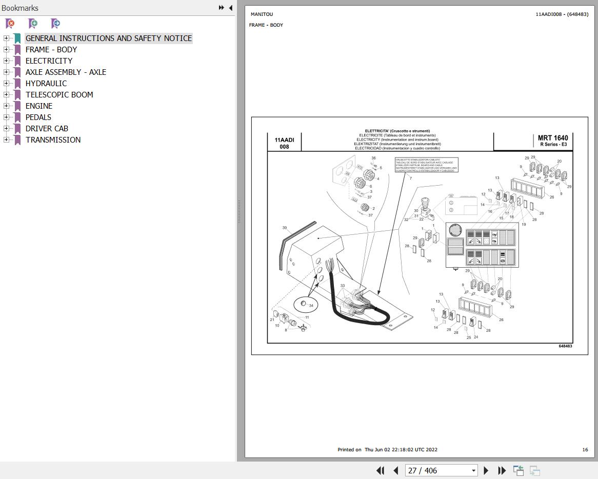The Bookmarks Of Manitou MRT 1640 TURBO SERIE R 400 MOT 1104D 44T E3 Telescopic Handler Parts Catalog: