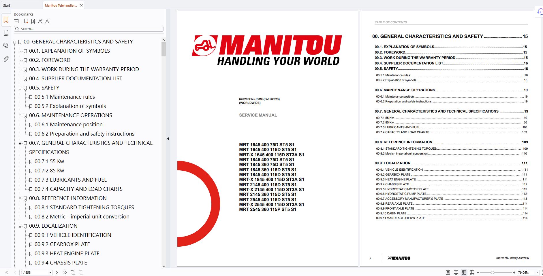 Manitou MRT 1645 400 75D ST5 S1 Service Manual 649293EN-USMG 2023
