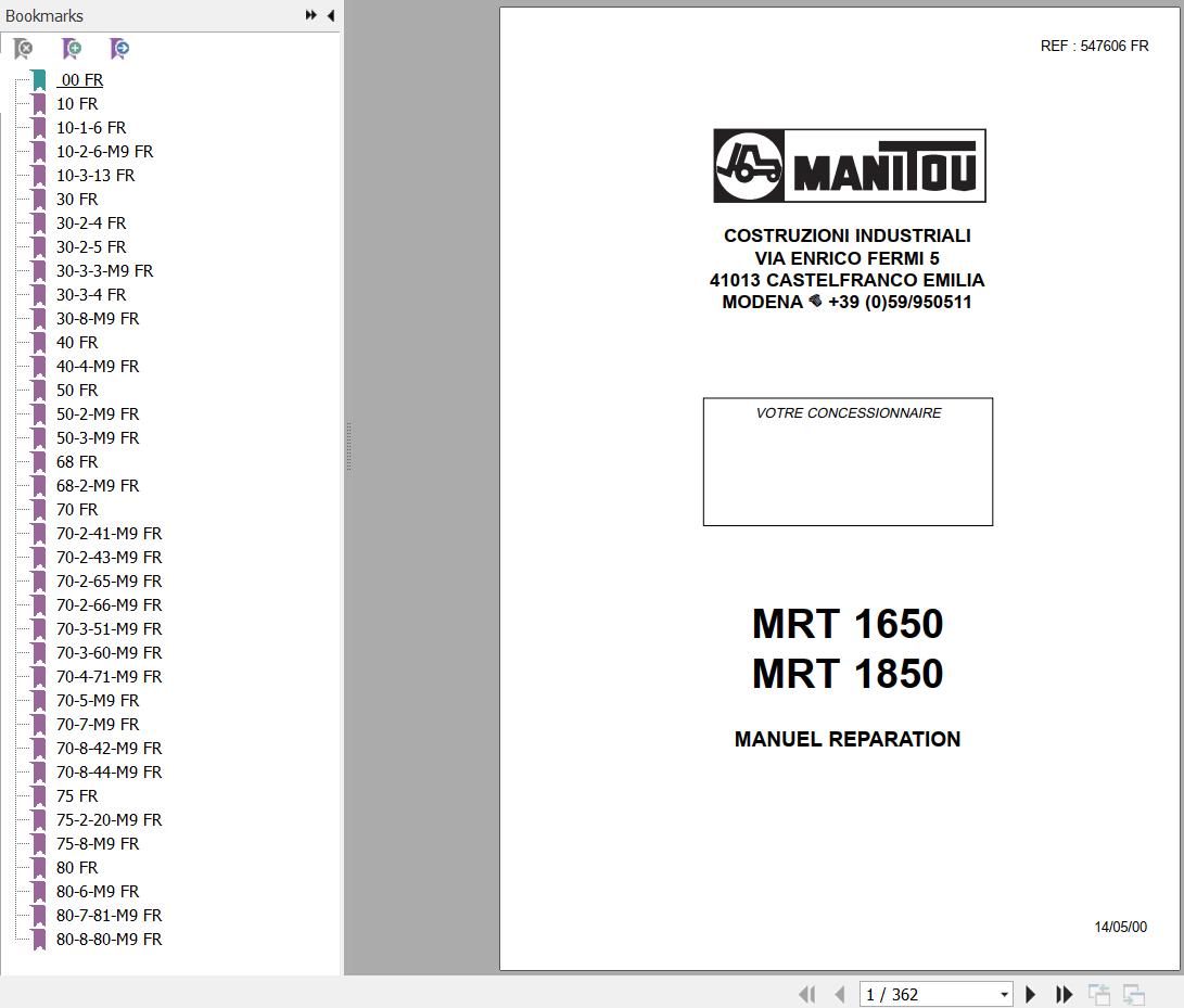 Manitou MRT 1650 MRT 1850 Repair Manual 547606