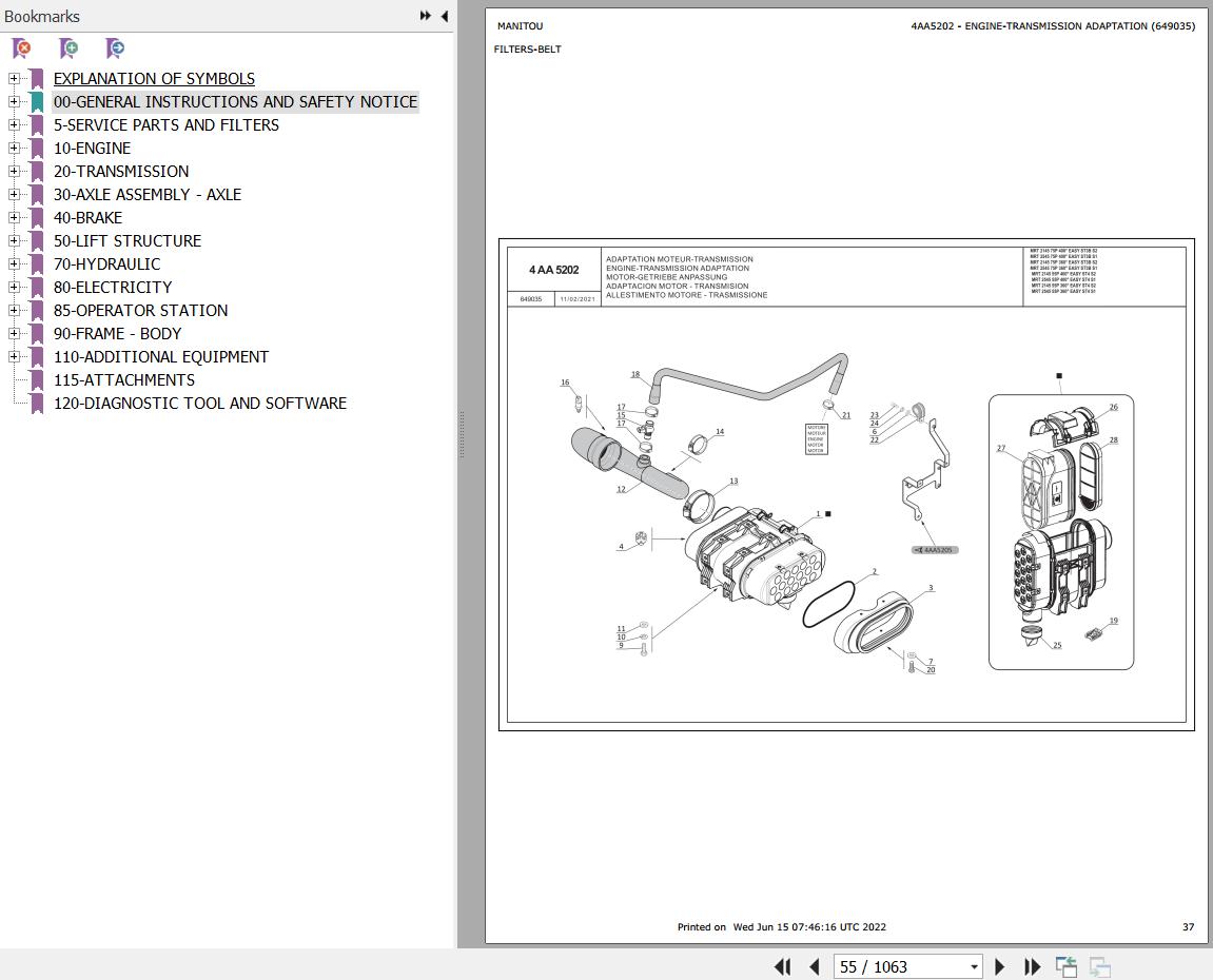 Manitou MRT 2145 2545 Series MRT-X 2145 2545 Series Parts Catalog 649035
