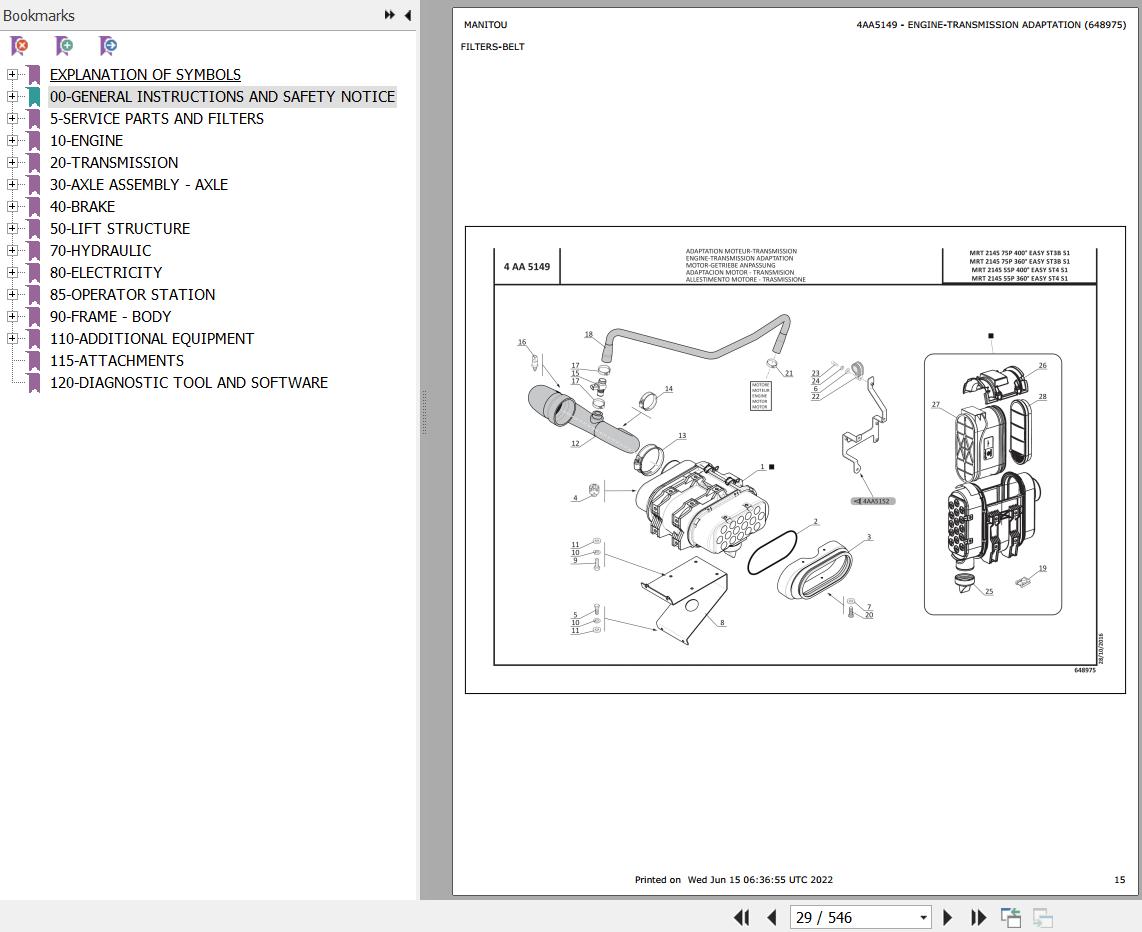 The Bookmarks Of Manitou MRT 2145 75P 400 EASY ST3B S1 Telescopic Handler Parts Catalog: