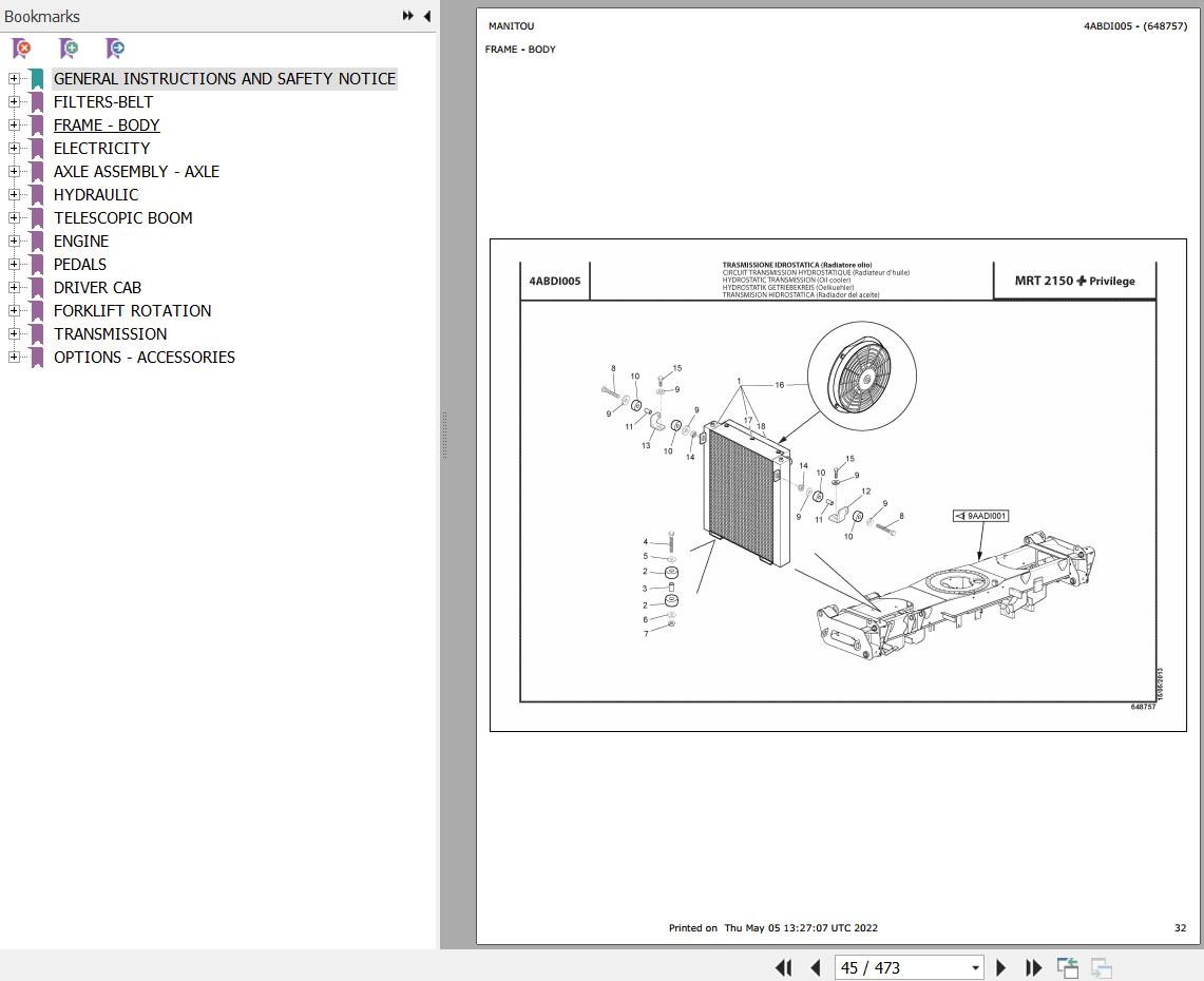Manitou MRT 2150 PRIVILEGE PLUS ARMEE FRANCAISE Parts Catalog 648757