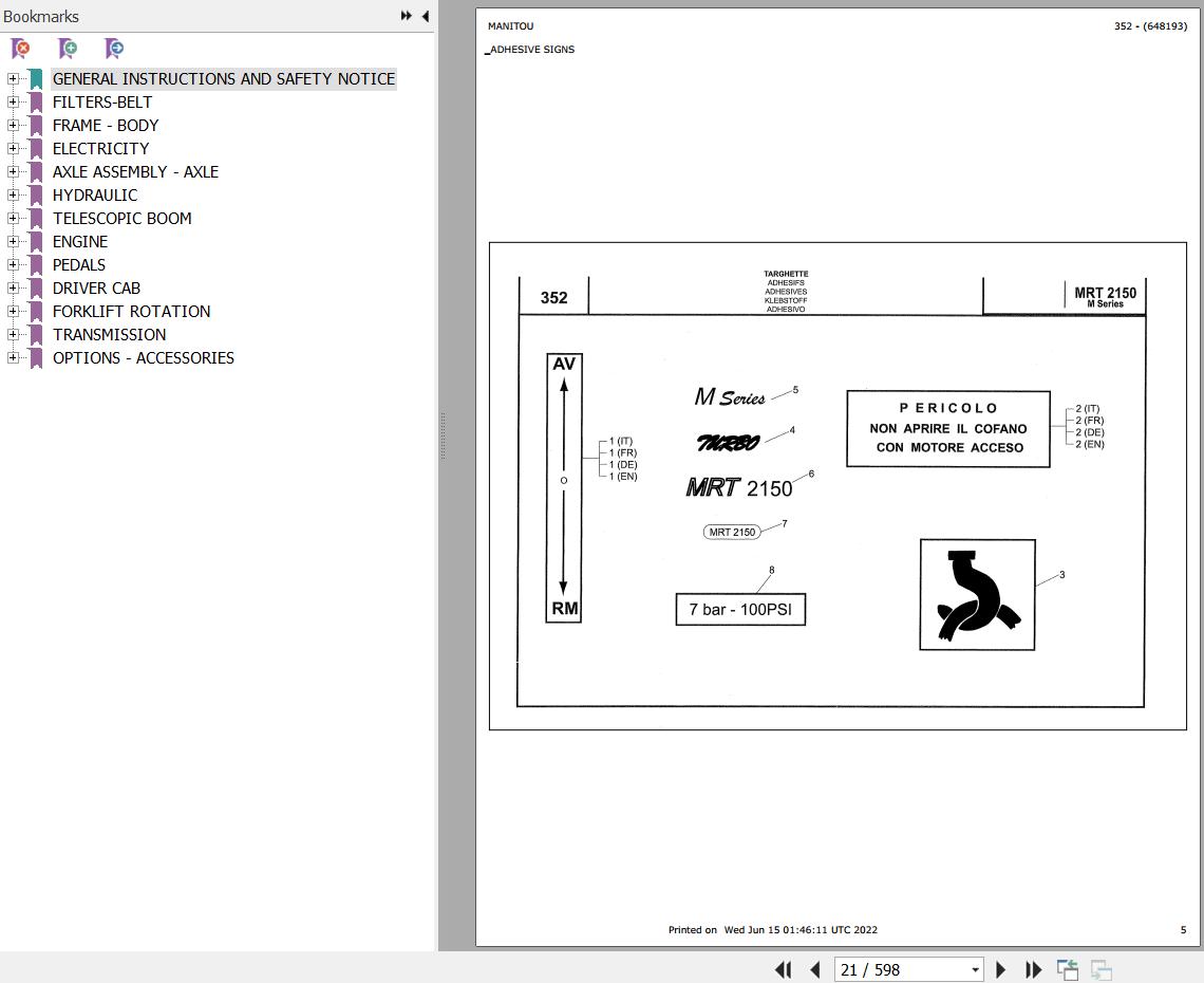 The Bookmarks Of Manitou MRT 2150 TURBO SERIE M MOT 1004 40T Telescopic Handler arts Catalog: