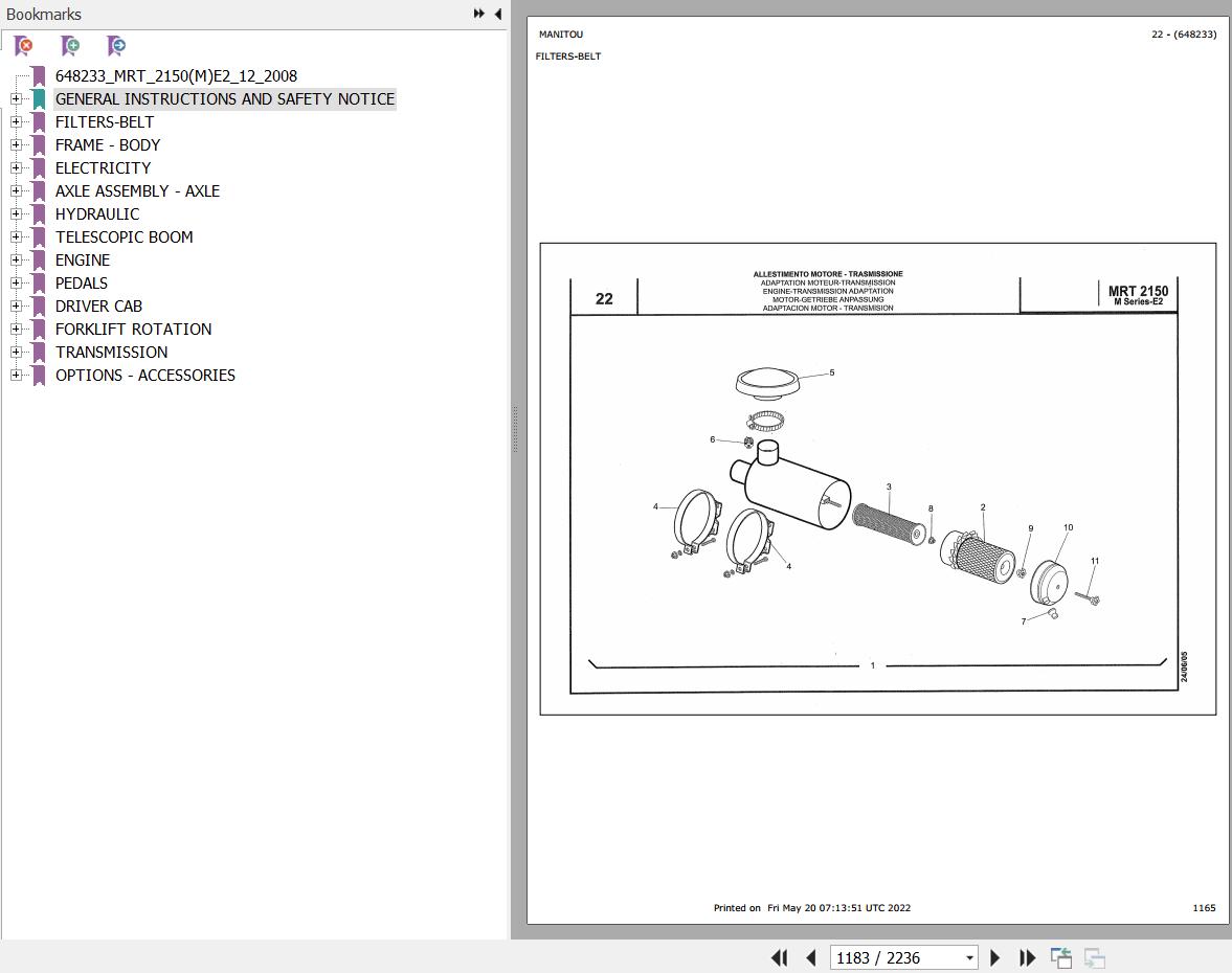 The Bookmarks Of Manitou MRT 2150 TURBO SERIE M MOT 1104C 44TA E2 Telescopic Handler Parts Catalog: