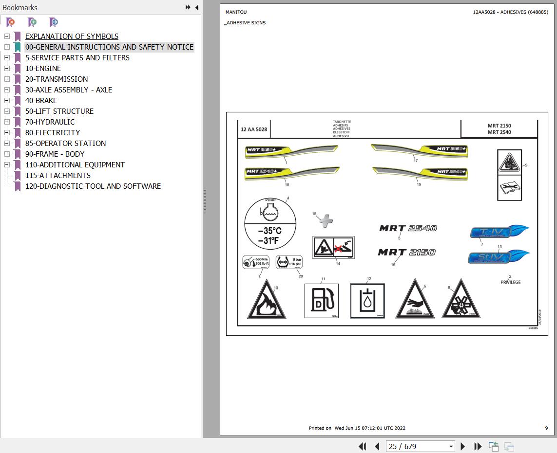 The Bookmarks Of Manitou MRT 2540 PRIVILEGE PLUS ST4 Telescopic Handler Parts Catalog: