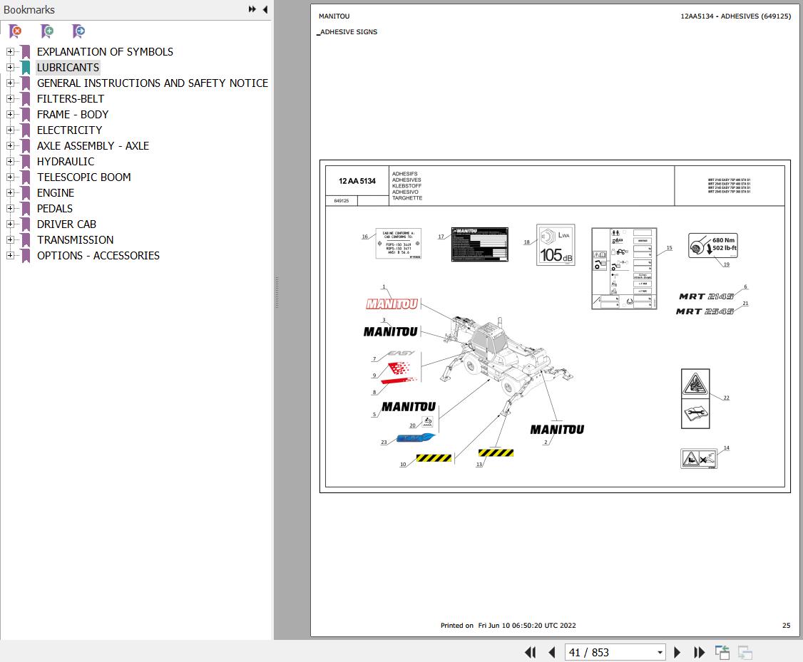 Manitou MRT 2545 EASY 75P 360 ST4 S1 Parts Catalog 649125