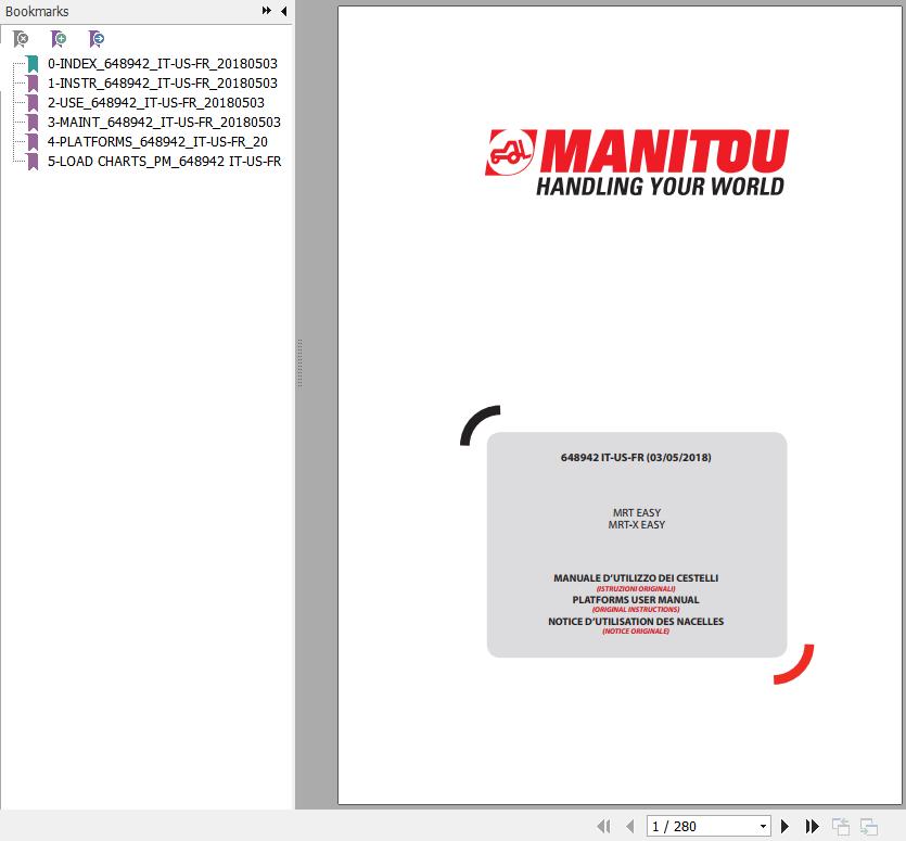 The Bookmarks of Manitou MRT-X 1440 Easy to MRT 2545 Easy Operator's Manual: