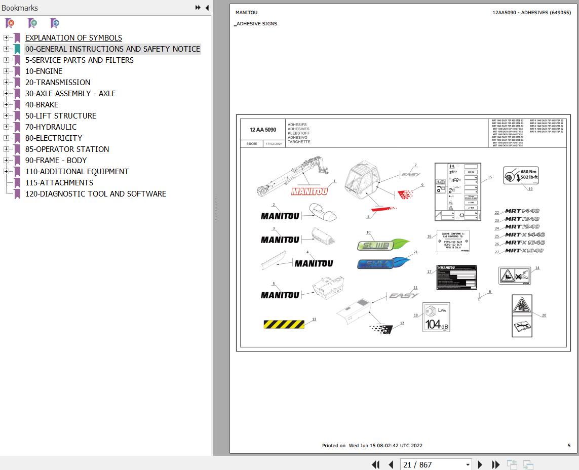 Manitou MRT-X 1440 EASY 75P 400 ST3A S2 Parts Catalog 649055