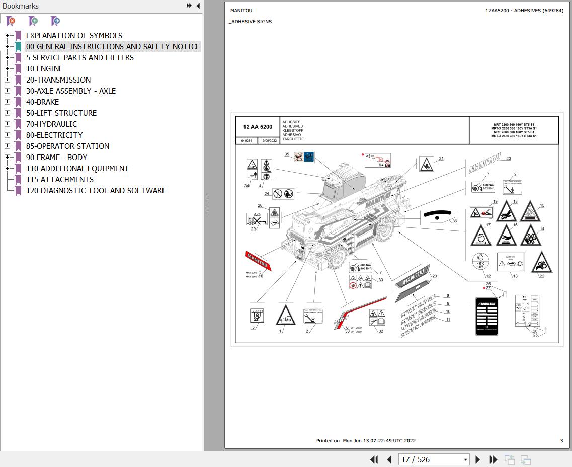 The Bookmarks Of Manitou MRT-X 2660 360 160Y ST3A S1 Telescopic Handler Parts Catalog: