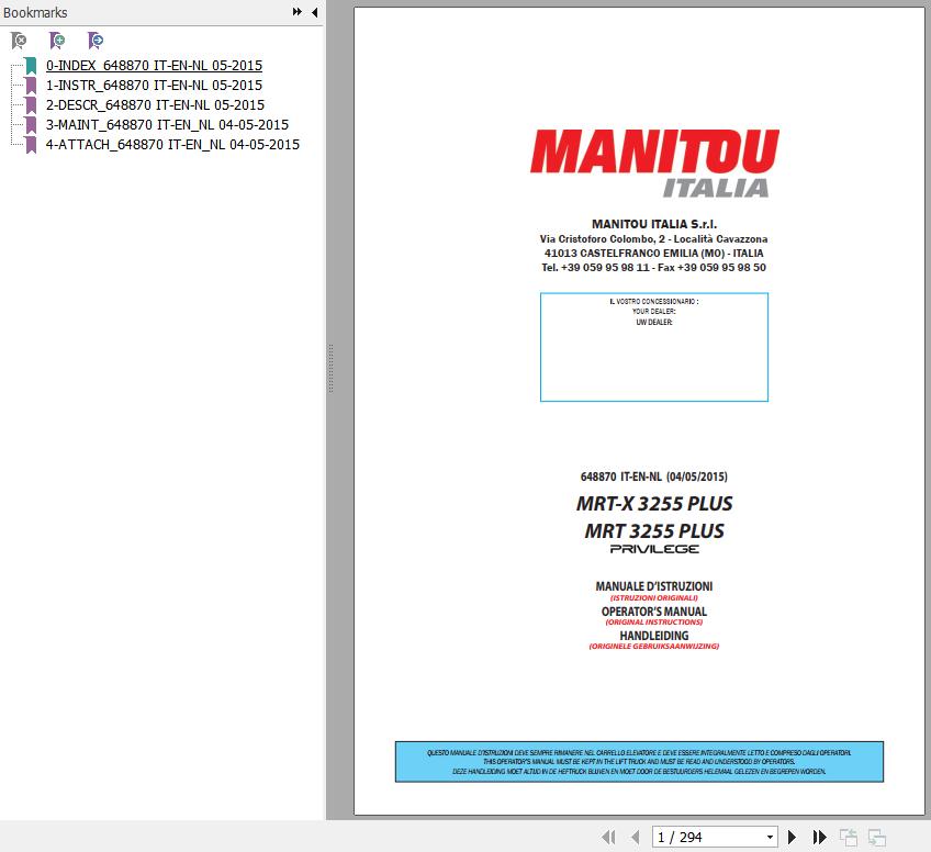 Manitou MRT-X 3255 Plus Privilege MRT 3255 Plus Privilege Operator's Manual 648870 IT EN NL