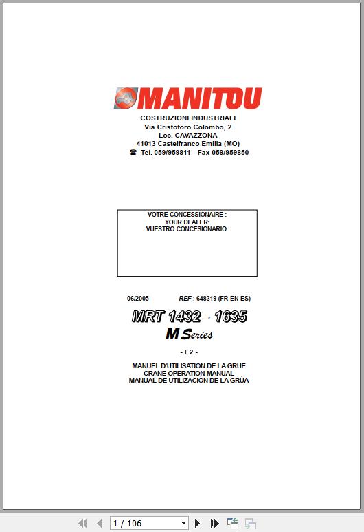 Manitou MRT 1432 M Series E2 MRT 1635 M Series E2 Operator's Manual 648464 FR EN ES
