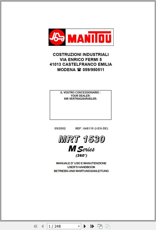 Manitou MRT 1530 M Series (360°) Operator's Manual 648110 IT EN DE