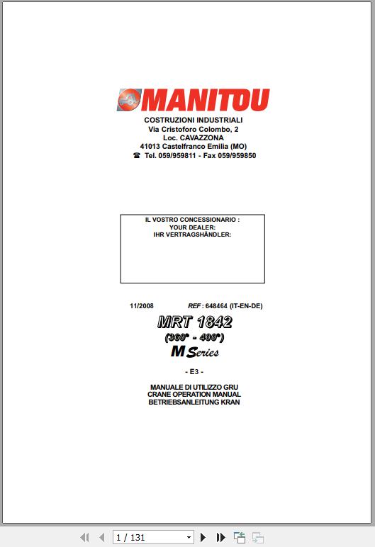 Manitou MRT 1842 (360°-400°) M Series E3 Operator's Manual 648464 IT EN DE