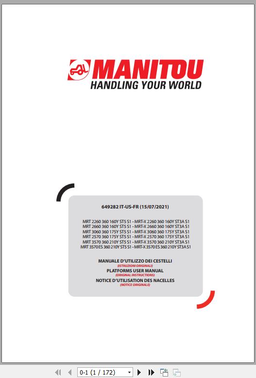 Manitou MRT 2260 360 160Y ST5 S1 To MRT-X 3570 ES 360 210Y ST3A S1 Operator's Manual 649282 IT US FR