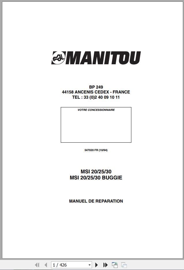 Manitou MSI 20 MSI 25 MSI 30 MSI 20 BUGGIE MSI 25 BUGGIE MSI 30 BUGGIE Repair Manual 547020