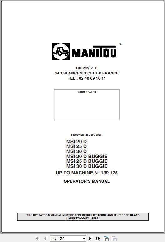 Manitou MSI 20 D MSI 25 D MSI 30 D (BUGGIE) Operator's Manual 547827