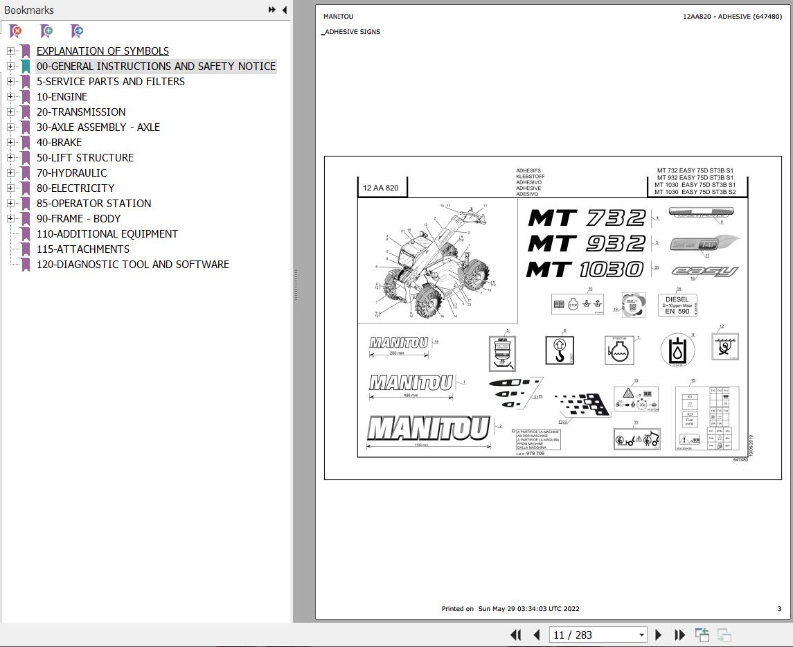 The Bookmarks Of Manitou MT 1030 EASY 75D ST3B S1 Telescopic Handler Parts Catalog: