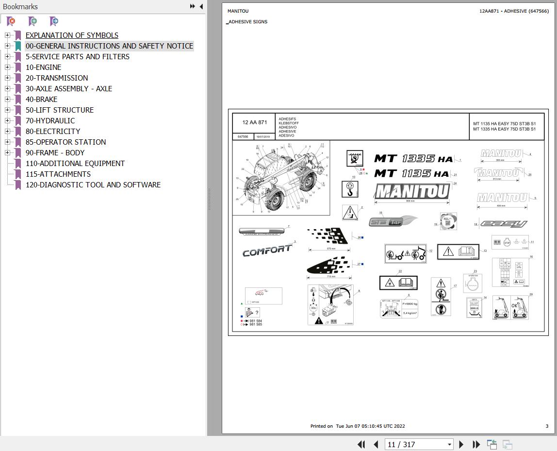 The Bookmarks Of Manitou MT 1135 HA EASY 75D ST3B S1 MT 1335 HA EASY 75D ST3B S1 Telescopic Handler Parts Catalog: