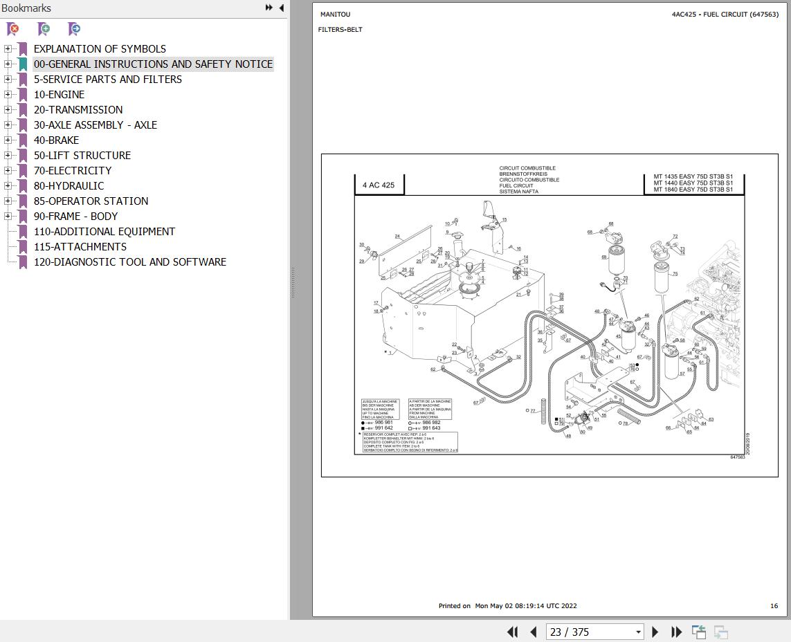Manitou MT 1435 1440 1840 EASY 75D ST3B S1 Parts Catalog 647563