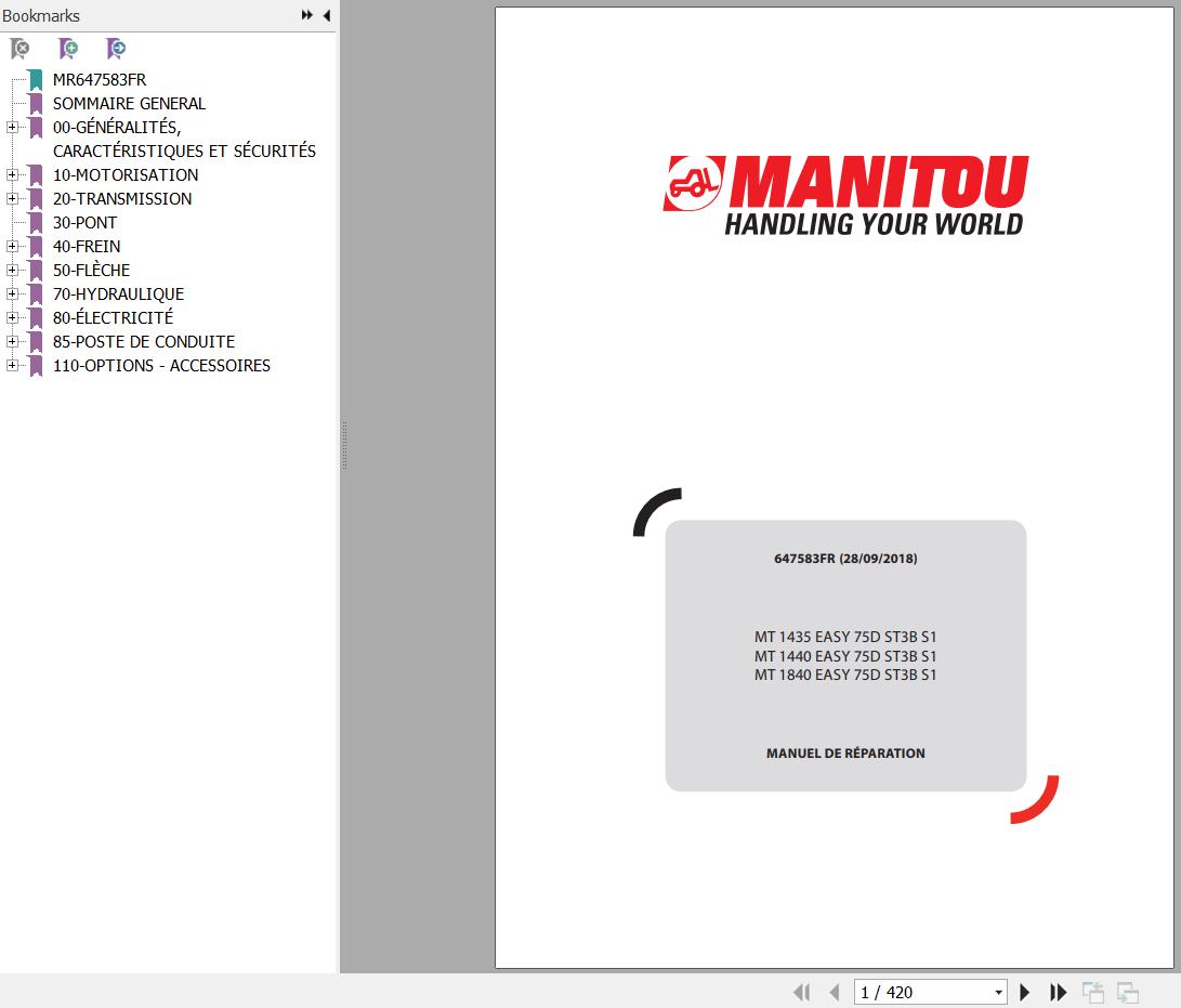 The Bookmarks Of Manitou MT 1435 1440 1840 EASY 75D ST3B S1 Telescopic Handlers Repair Mnaual:
