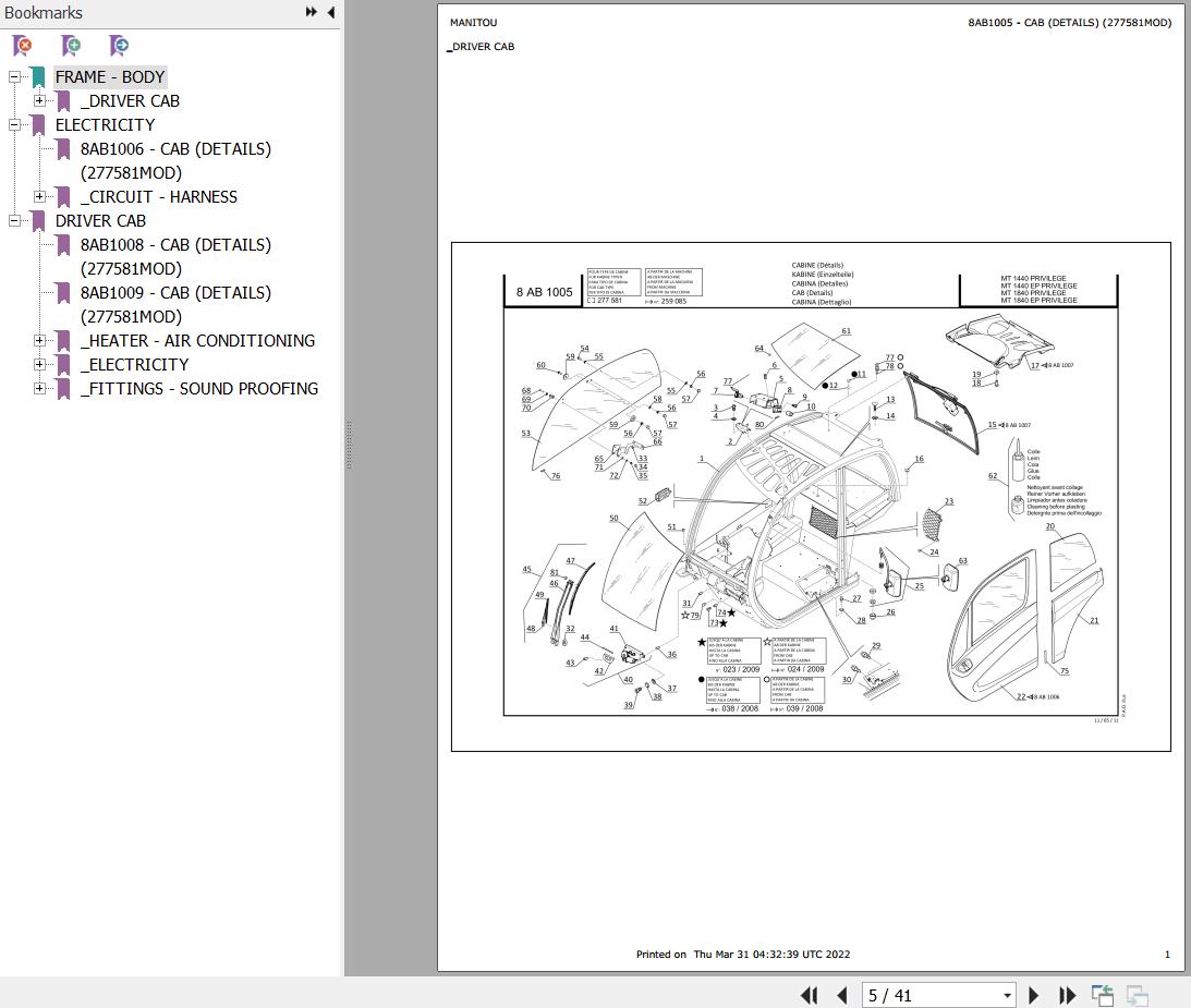 Manitou MT 1440 1840 1440 EP 1840 EP PRIVILEGE Parts Catalog 277581MOD