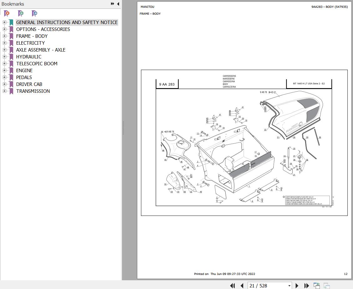 The Bookmarks Of Manitou MT 1445 H L TURBO S2 E2 USA Telescopic Handler Parts Catalog: