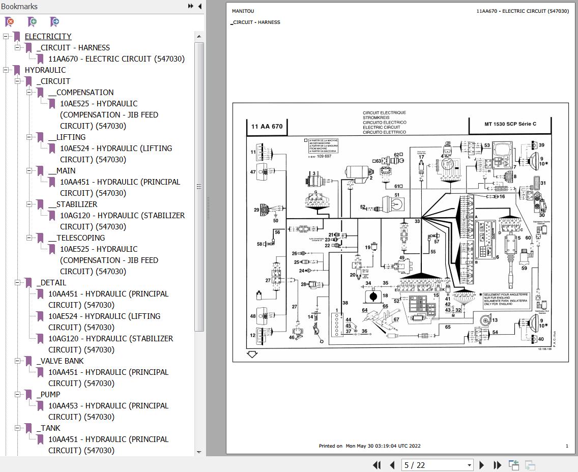 The Bookmarks Of Manitou MT 1530 SCP Series C Telescopic Handler Parts Catalog: