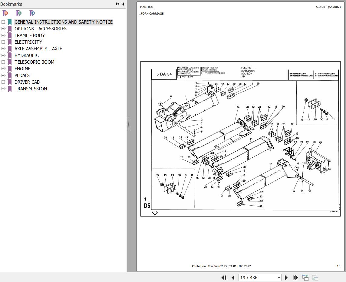 The Bookmarks Of Manitou MT 1530 SCP ULTRA Telescopic Handler Parts Catalog: