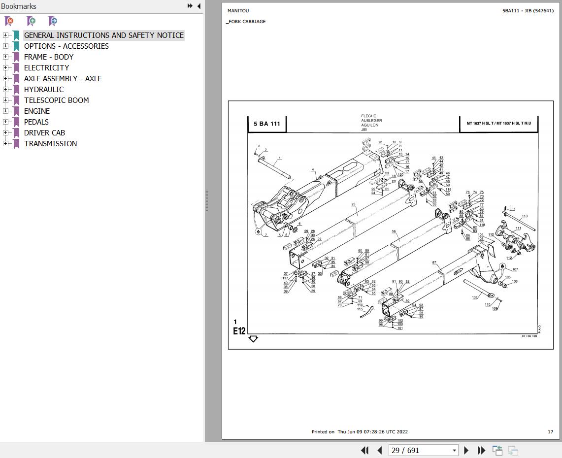 The Bookmarks Of Manitou MT 1637 H SL TURBO MONO ULTRA Telescopic Handler Parts Catalog: