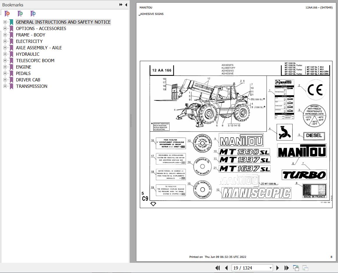 Manitou MT 1637 SL TURBO MONO ULTRA ORH Parts Catalog 547049