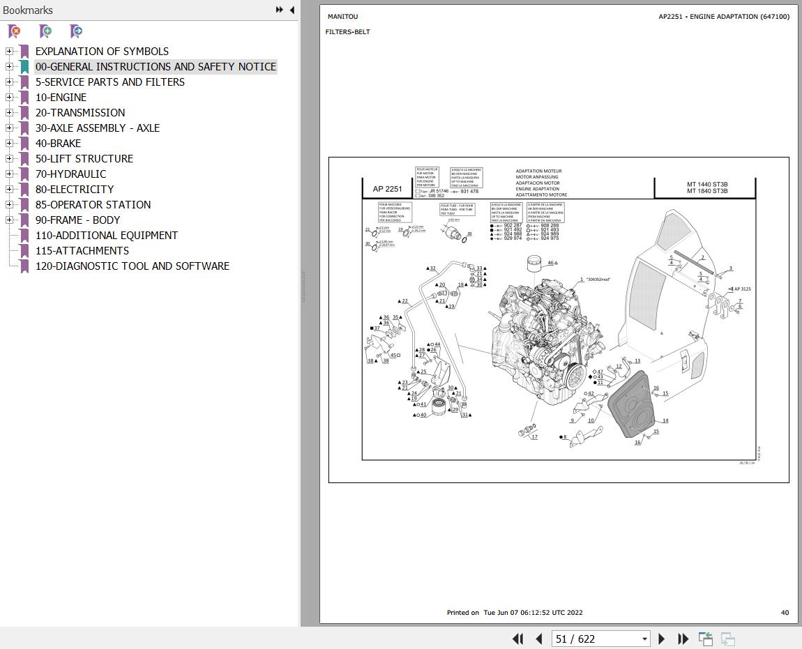 The Bookmarks Of Manitou MT 1840 ST3B Telescopic Handler Parts Catalog: