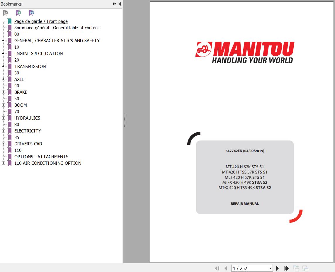 Manitou MT 420 H 420 H TSS MLT 420 H 57K ST5 S1 MT-X 420 H 420 H TSS 49K ST3A S2 Repair Manual 647742