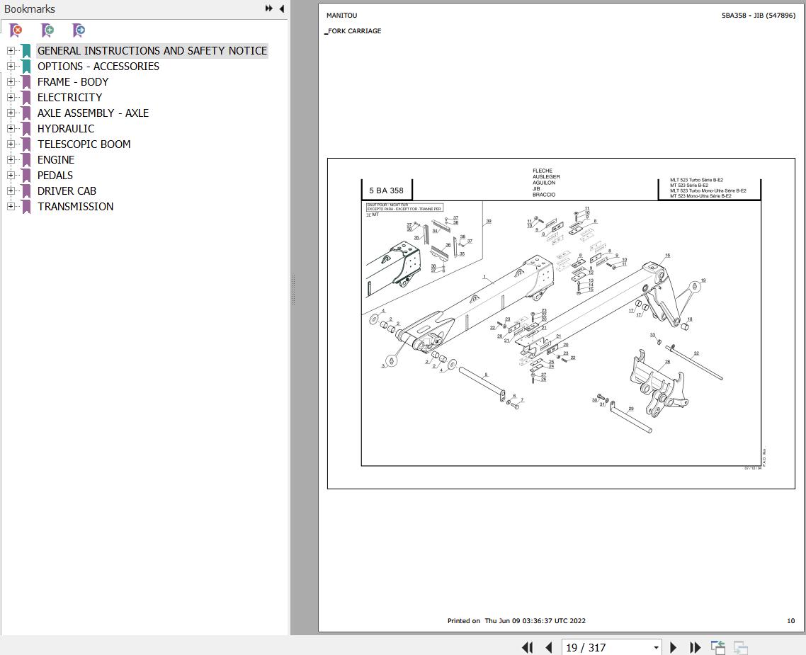 The Bookmarks Of Manitou MT 523 MONO ULTRA SB E2 Telescopic Handler Parts Catalog: