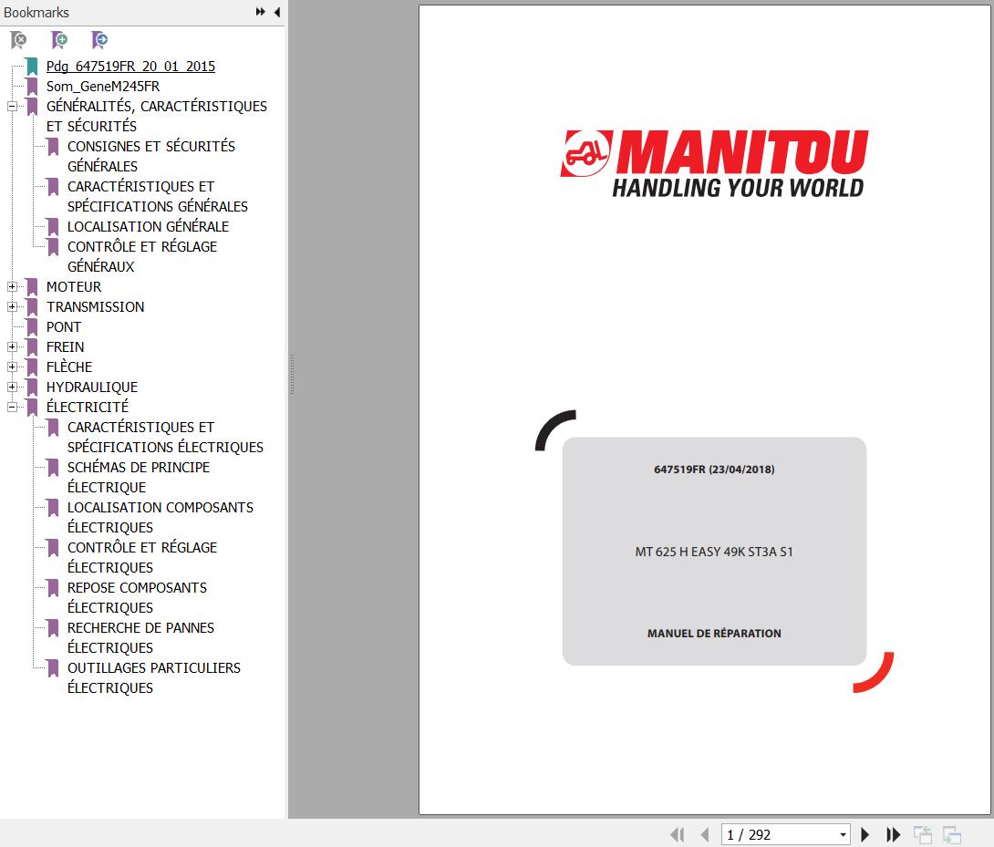 The Bookmarks Of Manitou MT 625 H EASY 49K ST3A S1 Telescopic Handlers Repair Manual: