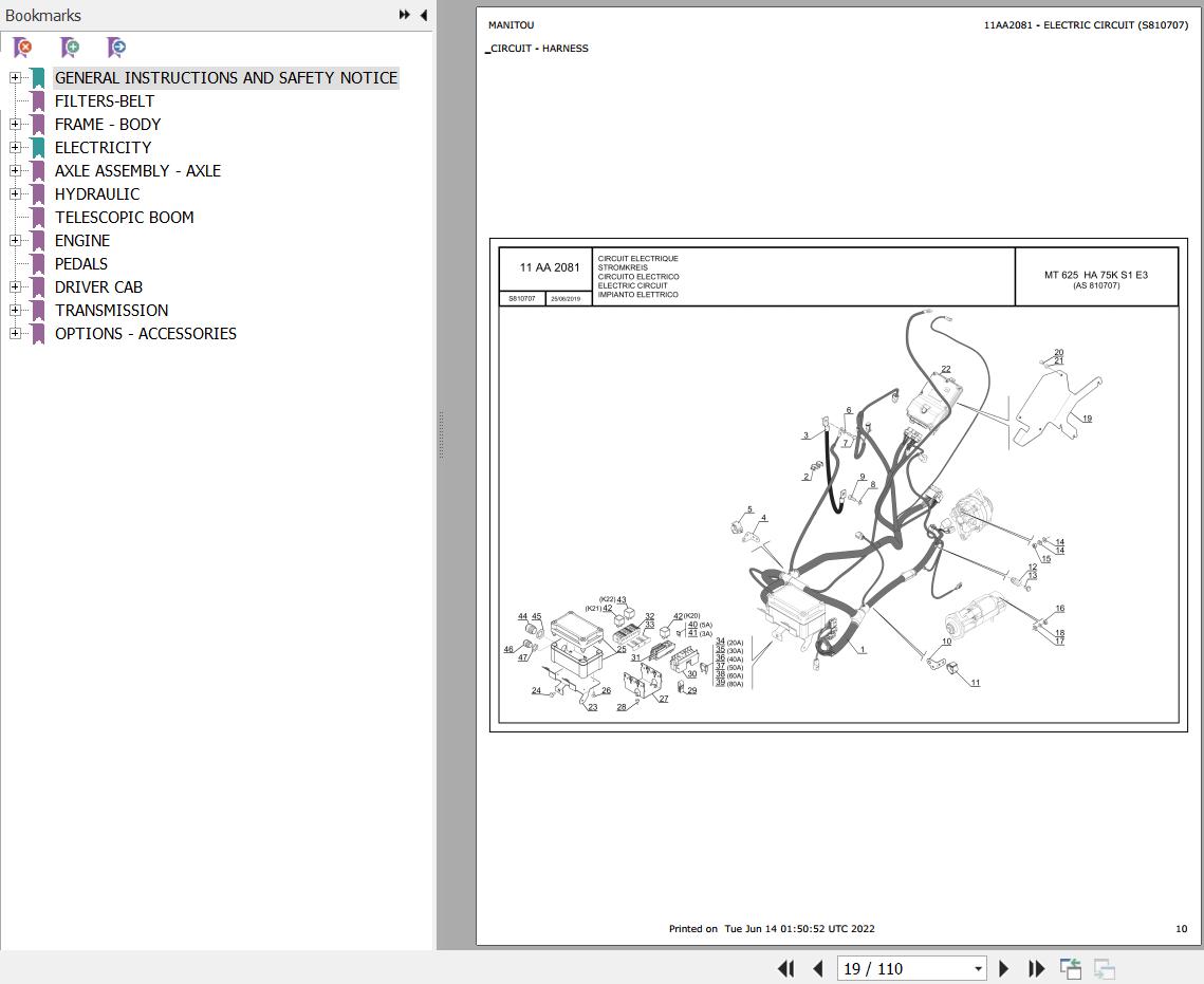 The Bookmarks Of Manitou MT 625 HA 75K S1 E3 Telescopic Handler Parts Catalog:
