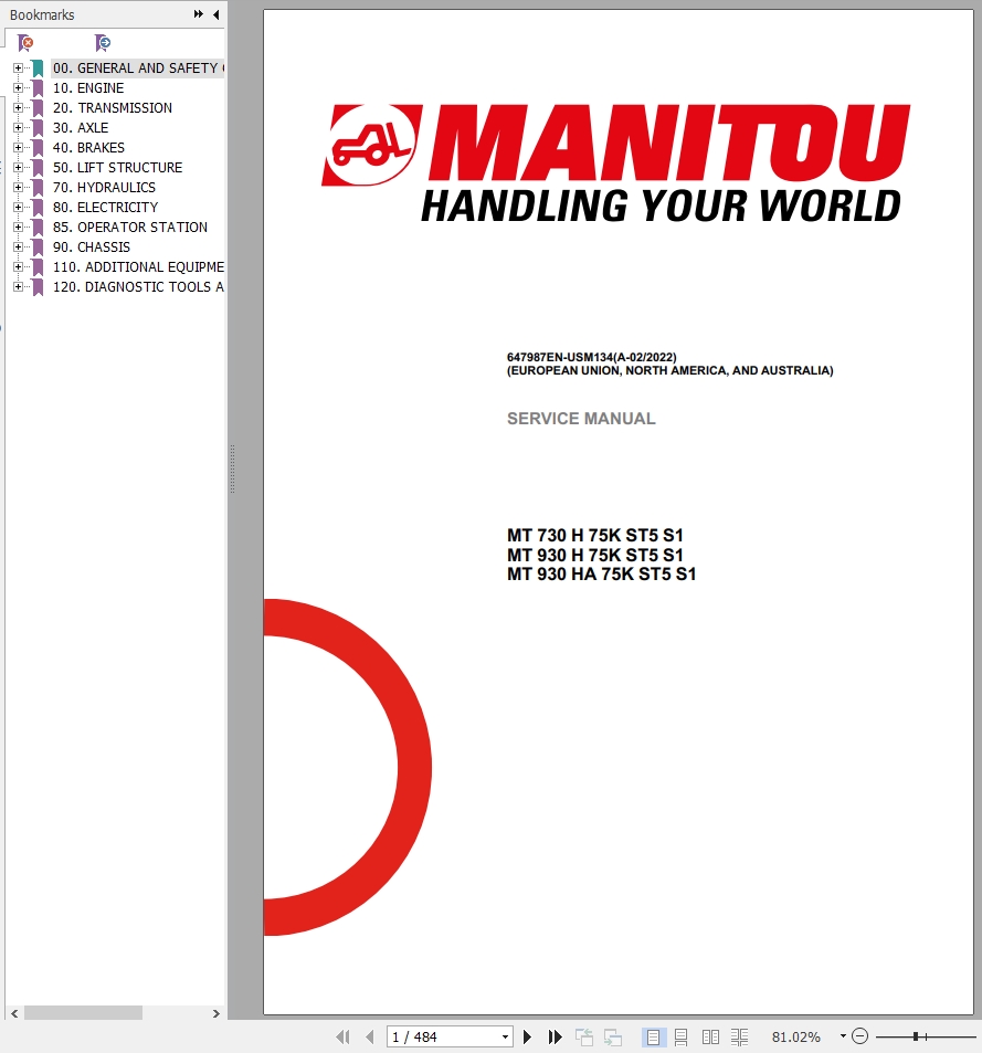The Bookmarks of Manitou MT 730 MT 930 HA 75K ST5 S1 Telehandler Service Manual: