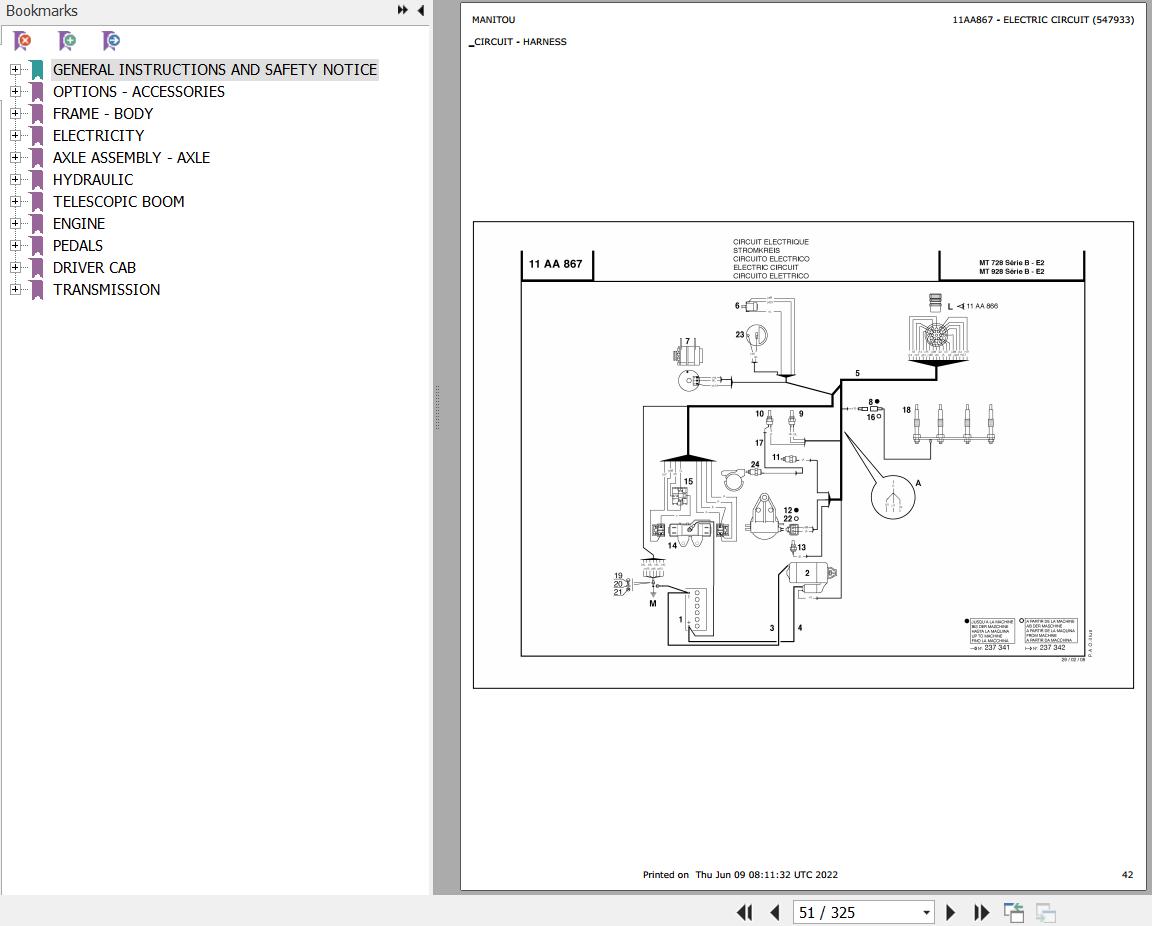 The Bookmarks Of Manitou MT 928 SB E2 Telescopic Handler Parts Catalog: