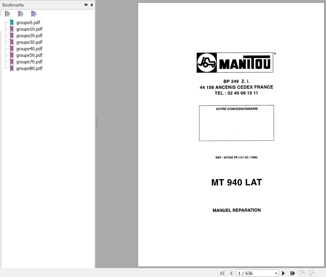 Manitou MT 940 LAT Repair Manual 547522