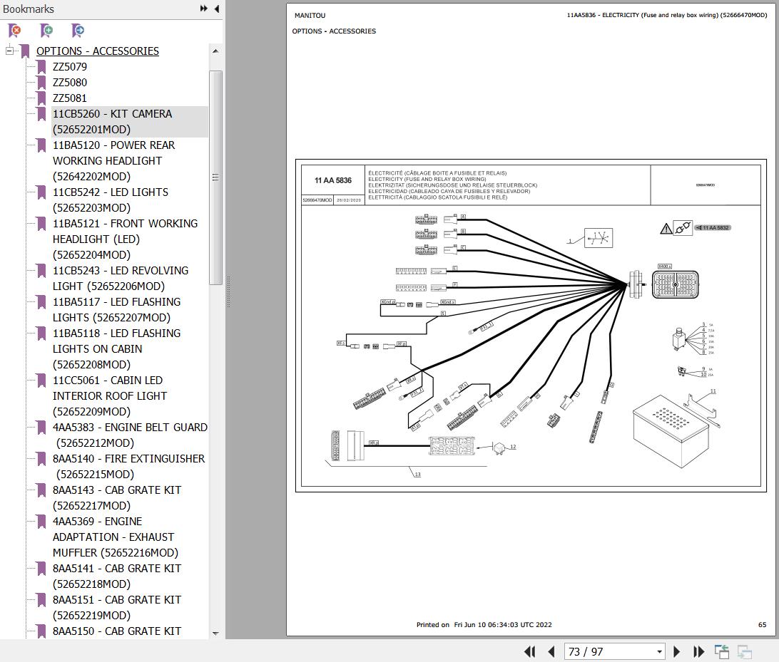 The Bookmarks Of Manitou MT-X 1033 ST S1 AWP MINNING Telescopic Handler Parts Catalog: