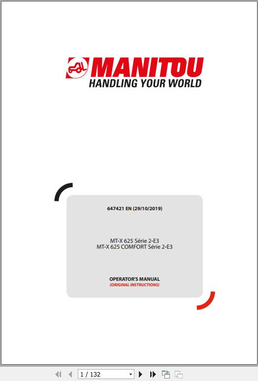 Manitou MT-X 625 Series 2-E3 MT-X 625 Comfort Series 2-E3 Operator's Manual 647421 EN