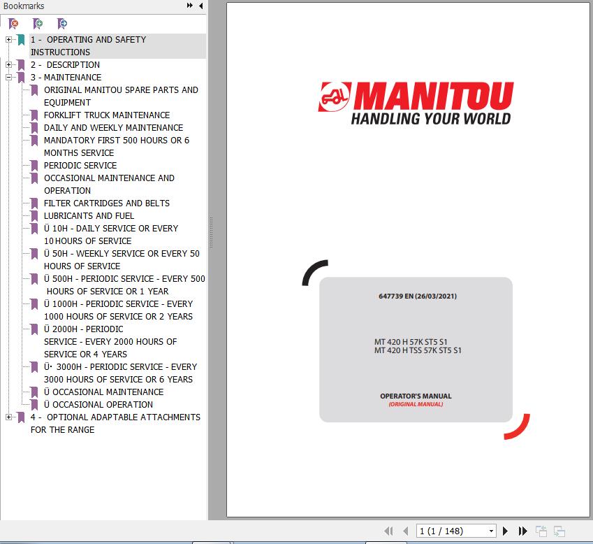 The Bookmarks of Manitou MT 420 H 57K ST5 S1 MT 420 H TSS 57K ST5 S1 Telescopic Handlers Operator's Manual: