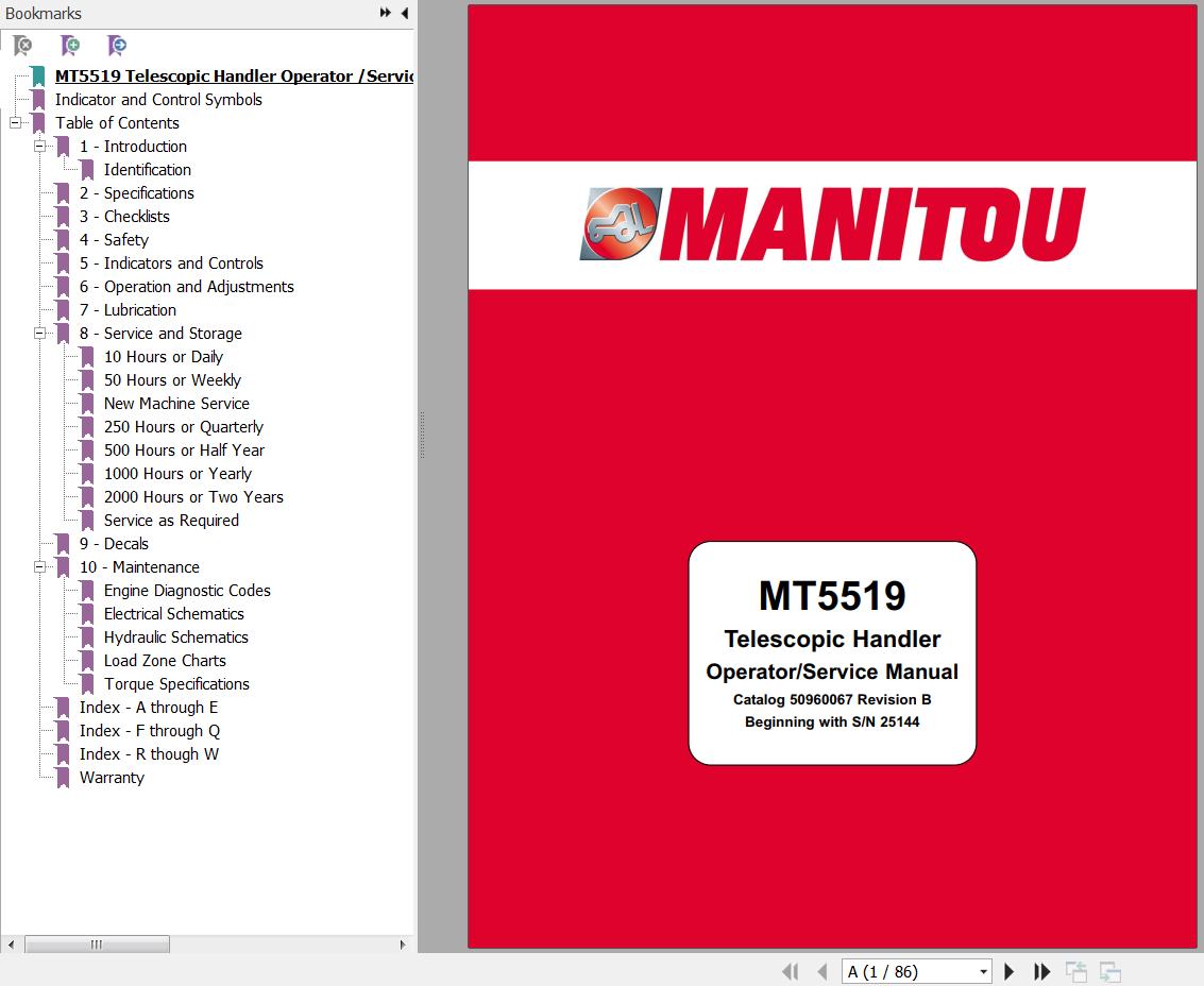 The Bookmarks Of Manitou MT5519 Operators & Service Manual: