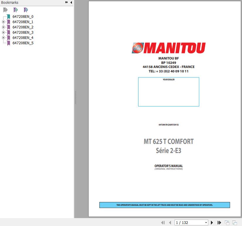 The Bookmarks of Manitou MT 625 T Comfor Series 2-E3 Telescopic Handlers Operator's Manual: