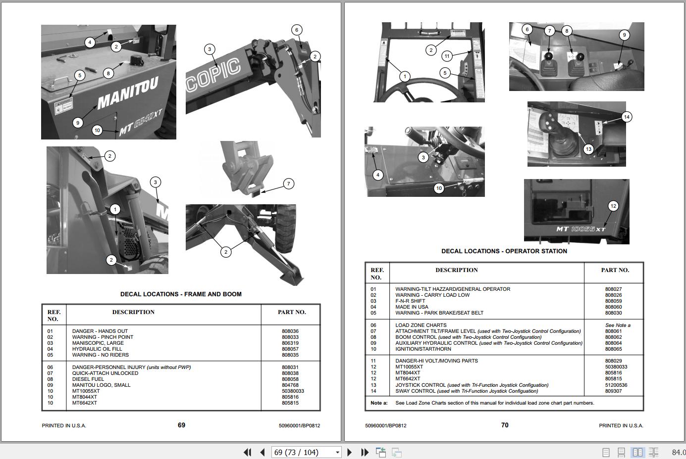 The Bookmarks Of Manitou MT6642XT MT8044XT MT10055XT TeleScopic Handler Operators & Service Manual:
