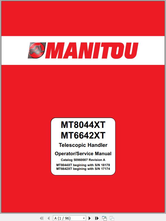 Manitou MT 6642 XT MT 8044 XT Operator's & Service Manual 50960007A