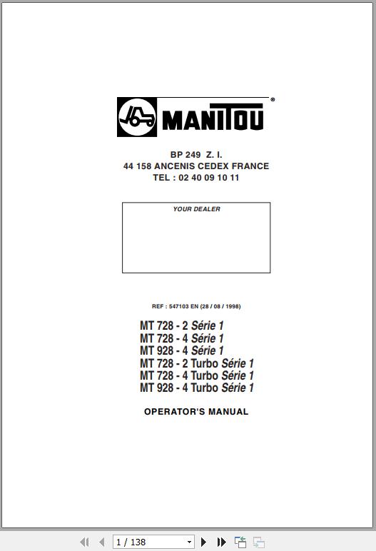Manitou MT 728-2 Series 1 To MT 928-4 Turbo Series 1 Operator's Manual 547103 EN