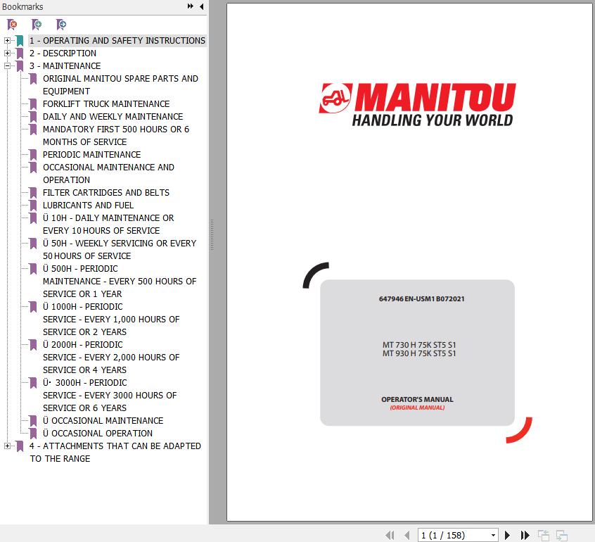 The Bookmarks of Manitou MT 730 H 75K ST5 S1 MT 930 H 75K ST5 S1 Telescopic Handlers Operator's Manual: