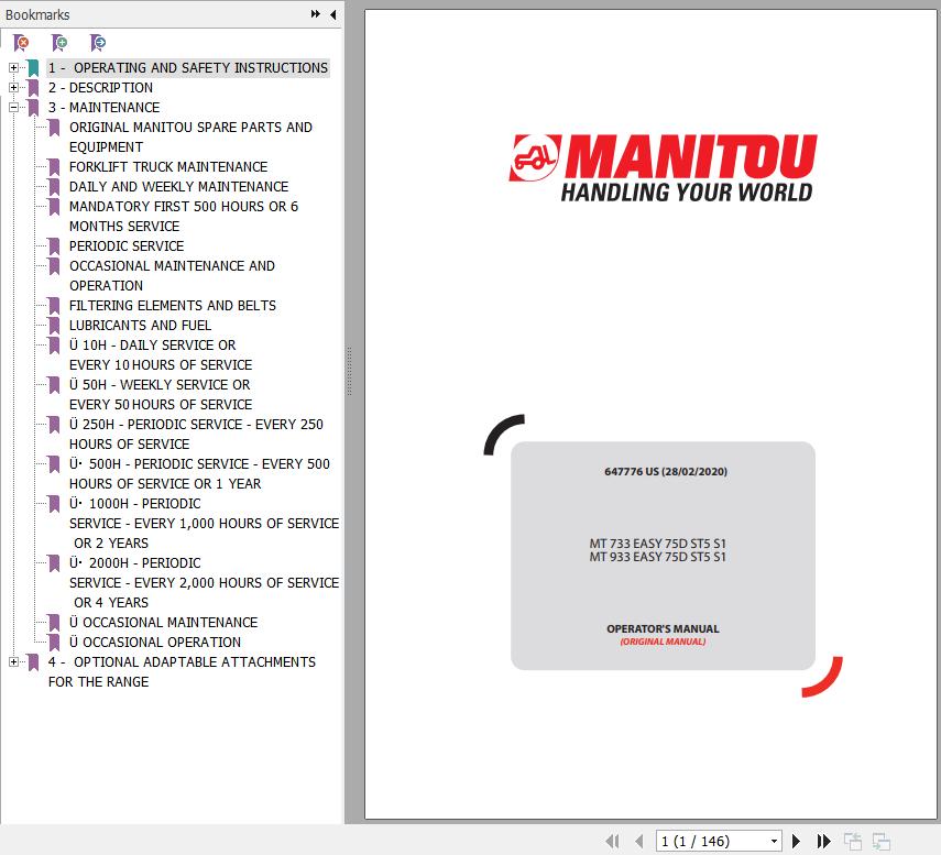 The Bookmarks of Manitou MT 733 Easy 75D ST5 S1 MT 933 Easy 75D ST5 S1 Operator's Manual: